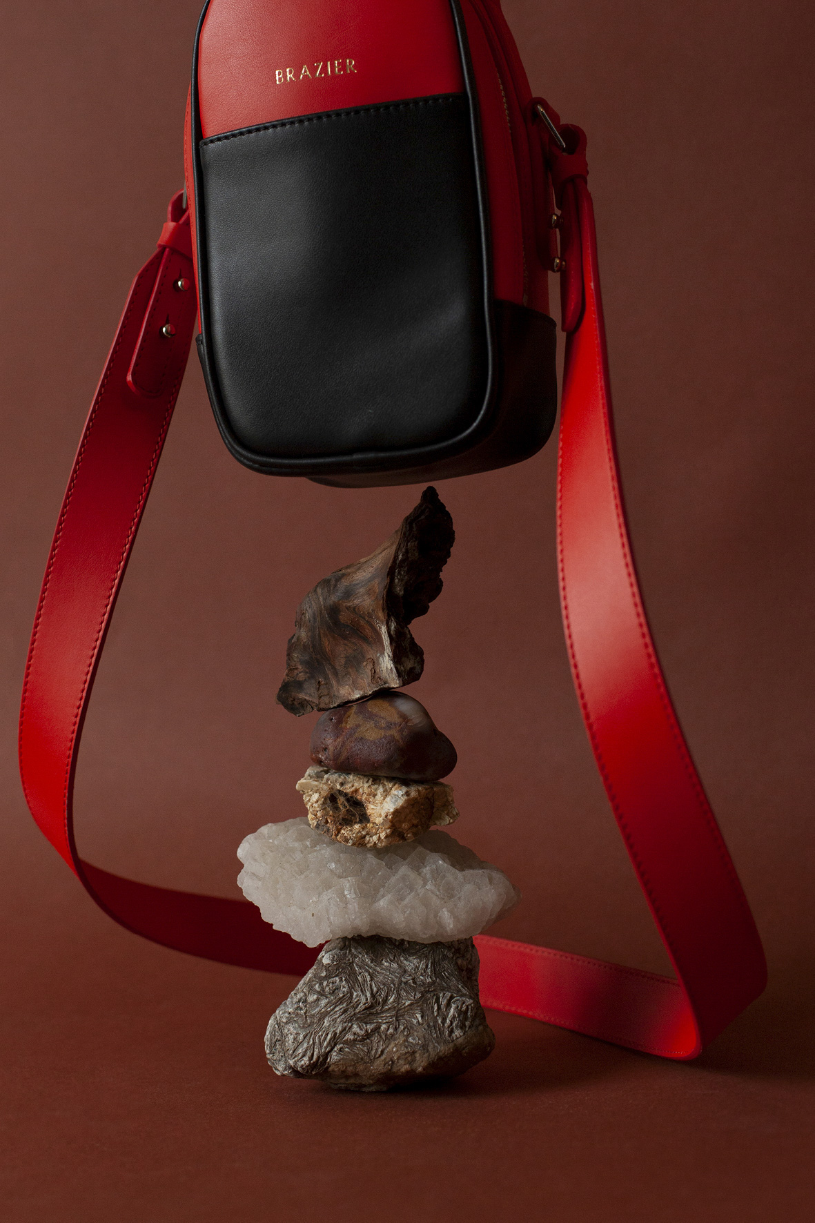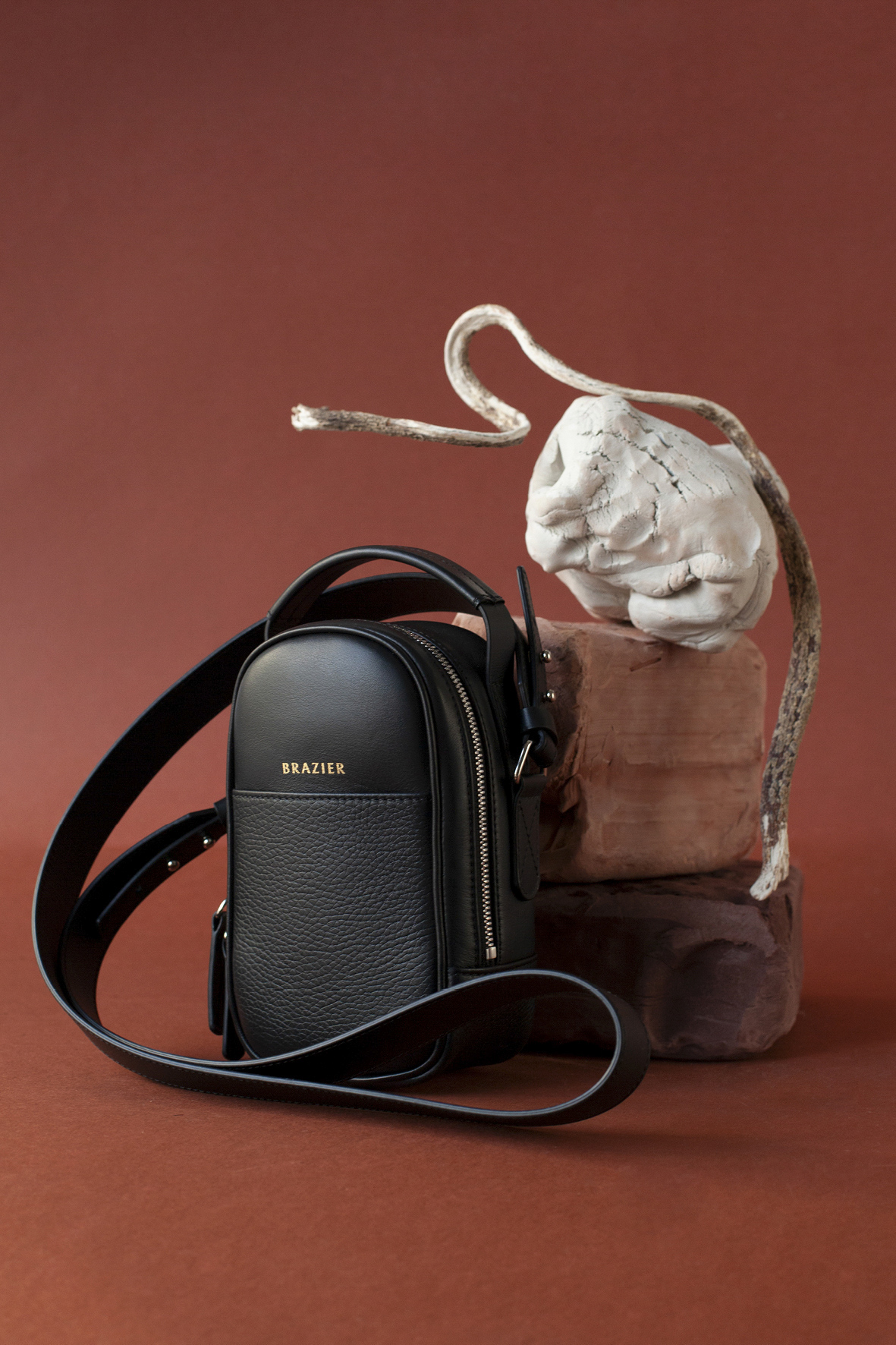 Leather goods with organic lines, playful materials, and a fiery color palette: Brazier is skewed, not square.