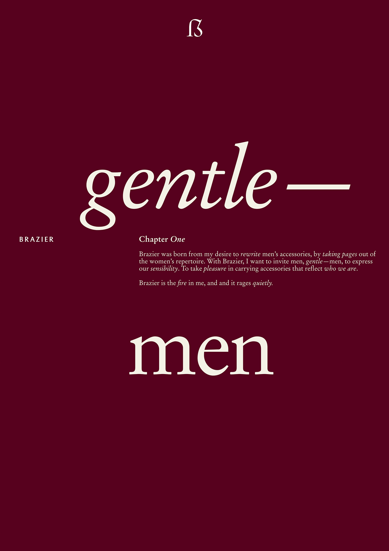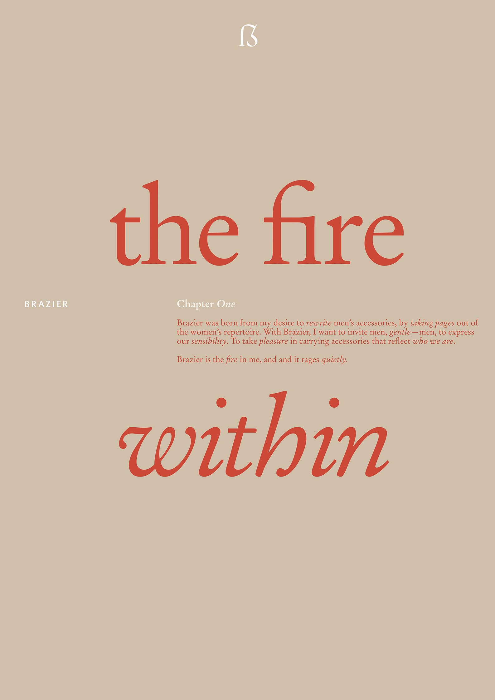 It weaves functionality in whimsical pockets, and sensibility in soft velvet lining. Brazier is a fire, but it doesn’t burn. It’s a quiet fire. The fire within.